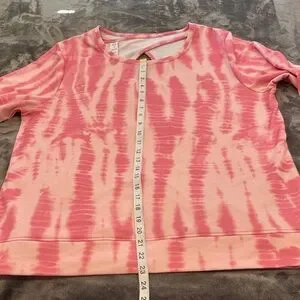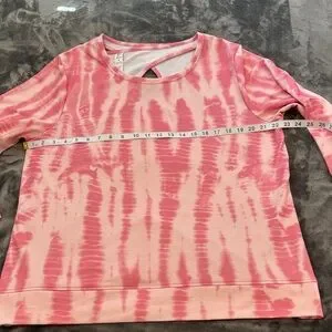 Soft pink tie-dye long sleeve top with a relaxed fit. Lightweight, breathable fabric for all-day comfort. Stylish crew neckline and subtle back strap detail. Easy to pair for casual looks.