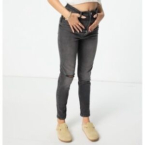 NWT FREE PEOPLE ZURI WASHED BLACK MOM JEANS - 26