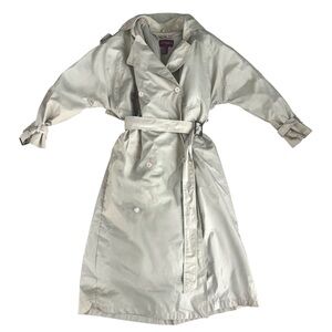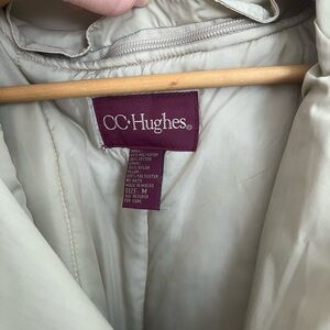 Vintage tan classic trench coat by CC Hughes. Featuring an adjustable belt, double breasted buttons and a removable insulated layer.