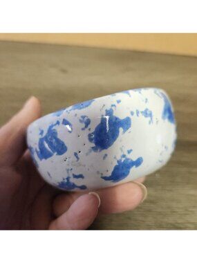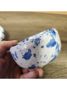 Vintage Bybee Pottery Kentucky Blue Spongeware 3.5" Bowls Signed KY Folk Art MCM