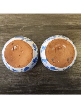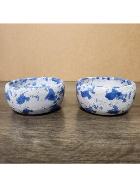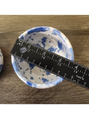 Vintage Bybee Pottery Kentucky Blue Spongeware 3.5" Bowls Signed KY Folk Art MCM Set of 2