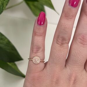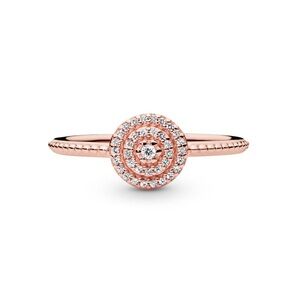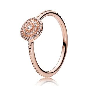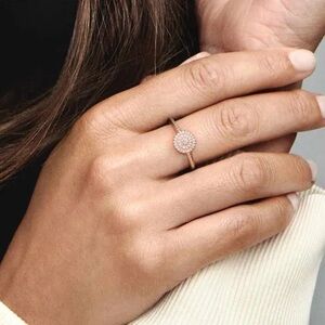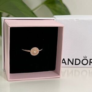 NWT Pandora Rose Gold Elegant Sparkle Halo Ring. Size 48 (4.5). Perfect for small fingers. Comes with original box you see in photos. Stamped ALE and MET (for Pandoras rose metal blend) in typical Pandora fashion. If you love Pandora please be sure to check out my other listings! Iโm a collector and add new listings weekly. ๐ค