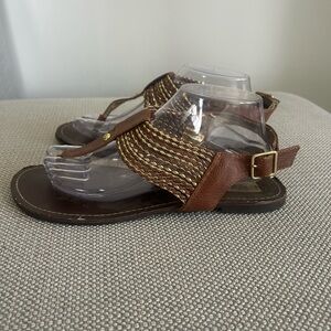 Steve Madden Brown Braided Metallic-Accent Thong Sandals