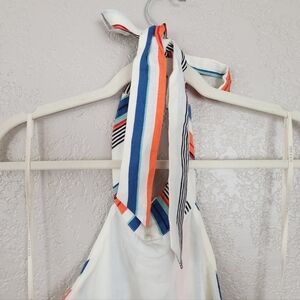 Moon River LINEN COTTON blend Striped Halter Romper White Blue Orange