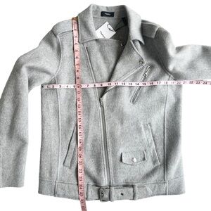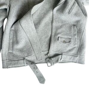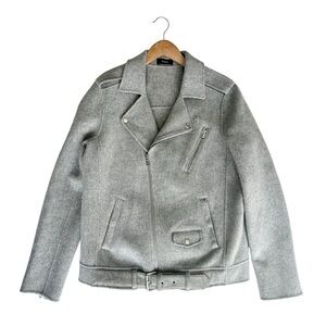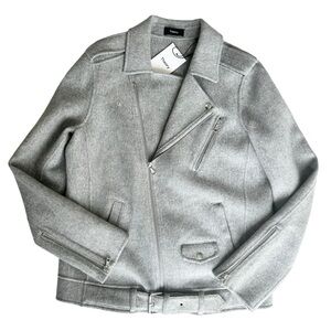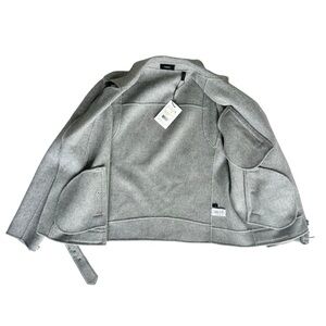 NWT Theory wool cashmere moto jacket zip snap buckle belt gray Tralsman DF large