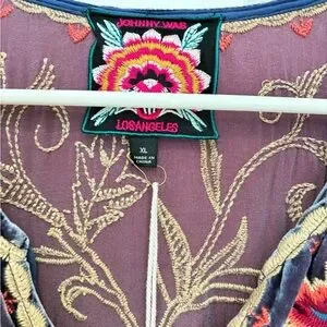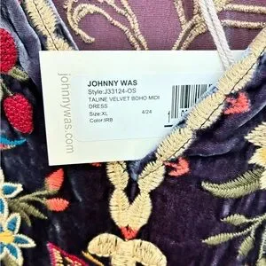 Johnny Was Embroidered Velvet Midi Dress - Blue