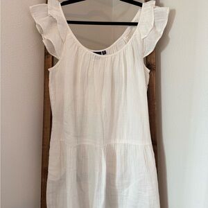 New with tags GAP white gauze mini dress with ruffle/flutter sleeves, size Medium. Lightweight double gauze cotton fabric, breathable and perfect for summer, vacation, beach, or casual wear. Relaxed fit.