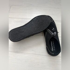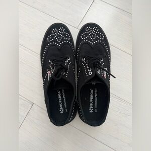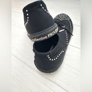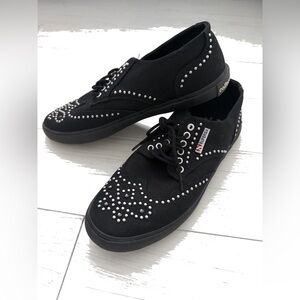 Black canvas derby sneakers with decorative metal studs. Lace-up closure for a secure fit. Low-profile rubber sole for casual wear. Distinct stud pattern for a bold look.No original box!