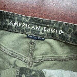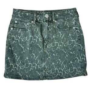 AMERICAN EAGLE Denim Stretch OliveGreen Camo Animal Print Mini Jean Skirt Size 2