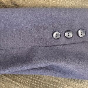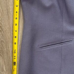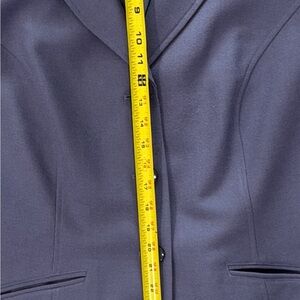Classic single-breasted blazer with three-button front. Notch lapel and princess seams for a flattering fit. Welt pockets and smooth interior lining. Clean, versatile navy tone for professional wear. There is a little snag in the sleeve, as pictured, but barely noticeable.