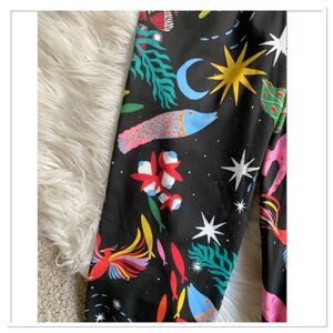 Black Yellow Multicolor Star Moon Animal Bold Colourful All Over Print Pull On Drawstring Waist Side Zip Pockets Elton Pant In Moonlight By Alden Adair Size Extra Small