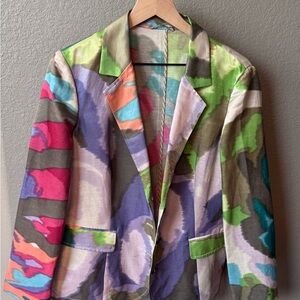 Etro Milano Watercolor Print Blazer Women’s Size 50. Made in Italy