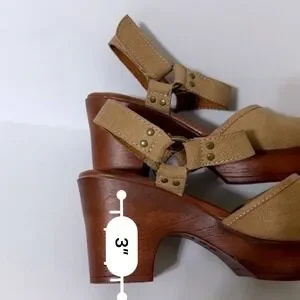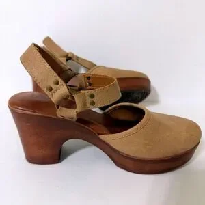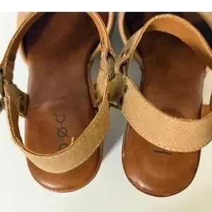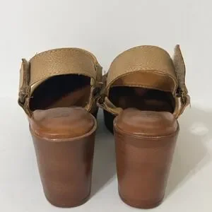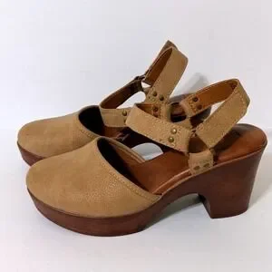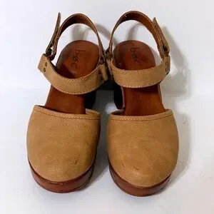 b.o.c. Tan Faux Leather Platform Clog Women 6M Sandals Wood Wedge Heel