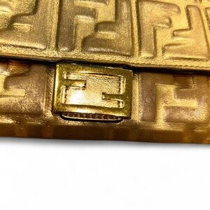 Serving ✨luxury Y2K✨ this RARE + discontinued authentic gold Fendi embossed wallet-on-chain is THAT statement piece 💫
