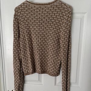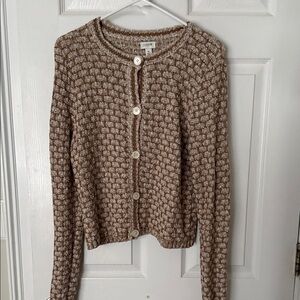 J. Crew Cream and Brown Button-Up Textured Cardigan