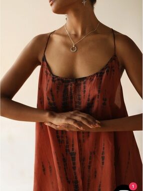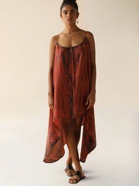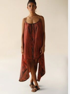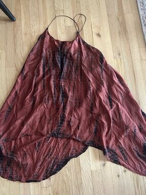 FARA Zen Silk High Low Dress Sz S/M red shibori tie dye beachy