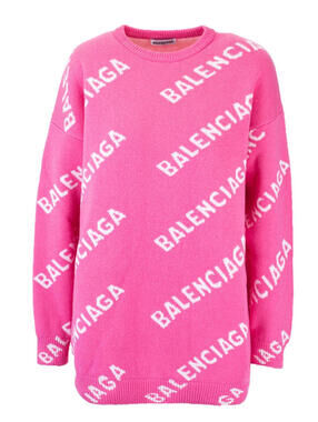 NWT $1,500 BALENCIAGA Oversized Logo Knit All Over Print Monogram Sweater XS/S