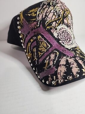Stephanie Head Wear Snapback Hat Y2K Rose Embellished Ed Hardy Bejeweled Grunge