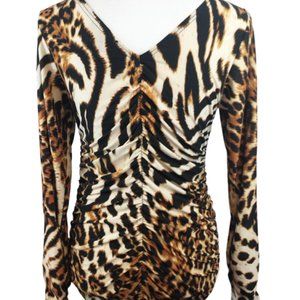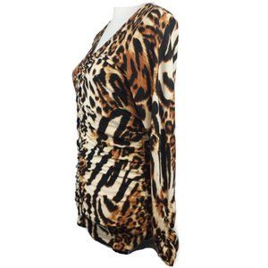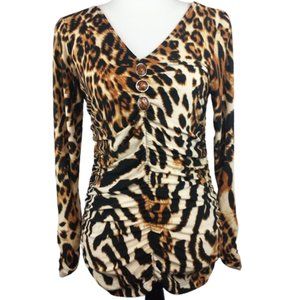 ISABEL Black & Brown Leopard Print Pullover Blouse Women's M