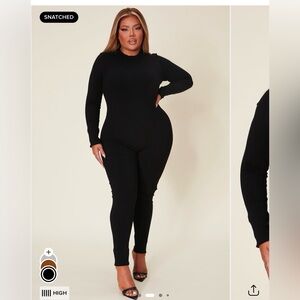 Fashion Nova Black Ribbed Long Sleeve Slim Jumpsuit