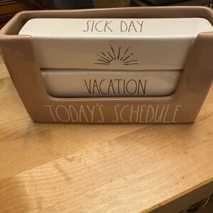 Has various blocks that say: “Meeting”, “Coffee Break”, “Sick Day”, “Vacation”, “Back in Five” “Day Off”