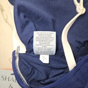Brand New With Tags (NWT)! This flattering Shade & Shore one-piece swimsuit features a timeless navy blue body with crisp white contrast binding at the square neckline for a clean, nautical-inspired look.
