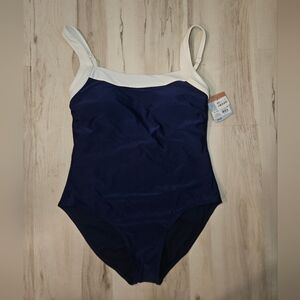 Shade & Shore NWT Navy White Colorblock One Piece Swimsuit XL 16 Square Neck