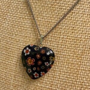 Authentic Dior chain with Unbranded Black Floral Heart Pendant