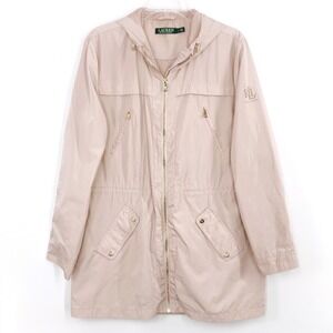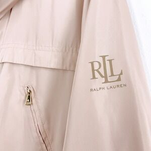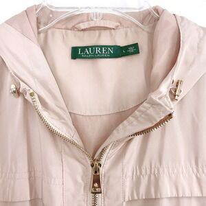 Lauren Ralph Lauren Hooded Jacket Womens L Pink Windbreaker Lightweight Gold Zip