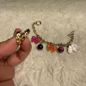 Gold Charm Bracelet with Butterfly & elephant Charms and gold hoop earrings