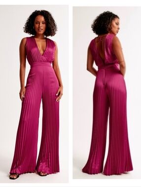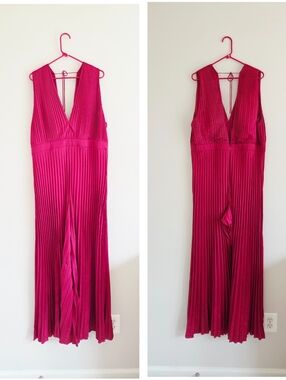 Abercrombie & Fitch Giselle Pleated Sleeveless Plunge Wide Leg Jumpsuit XXL