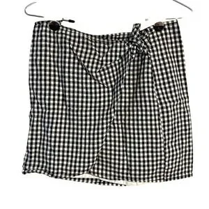 Madewell Gingham Cottagecore Wrap Mini Skirt Black and White EUC small 4