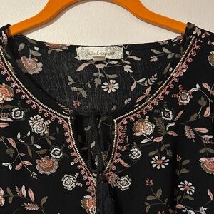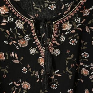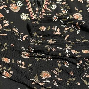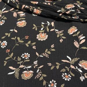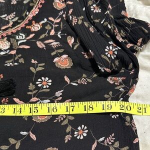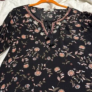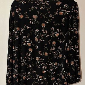 This chic black blouse features a delicate floral design, perfect for adding elegance to your wardrobe. Ideal for both casual and office. Size Medium