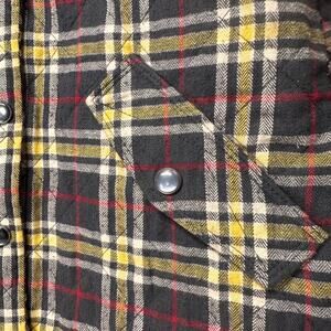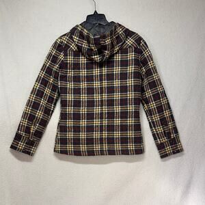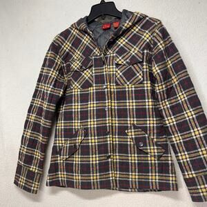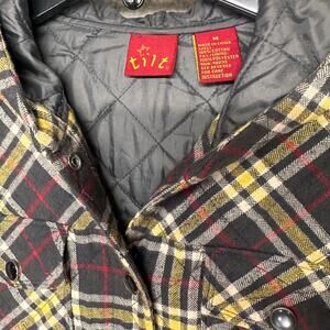 Tilt Plaid Hooded Quilted Jacket Size Medium Black Yellow Flannel Coat