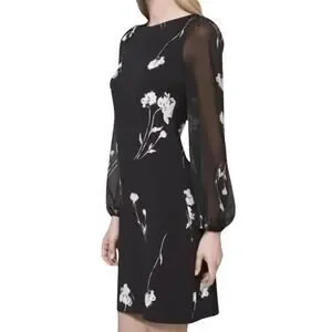 White House Black Market Long Sleeve Chiffon Sleeve Shift Dress Size Medium