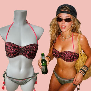 Keywords: y2k bikini set, mixed bikini, lace bikini top, bandeau swim, tie side bikini, ardene swim, la vie en rose bikini, neon swimwear, festival swim, boho swim
