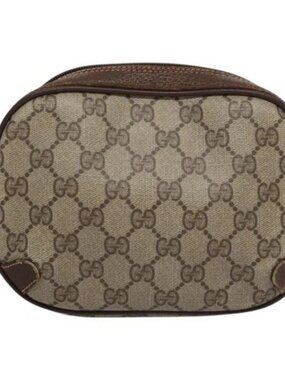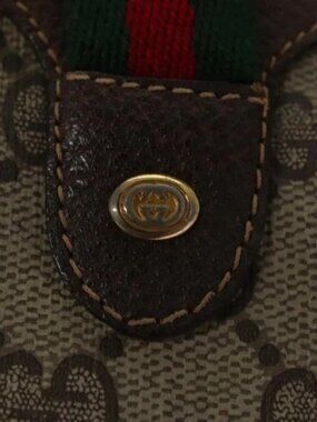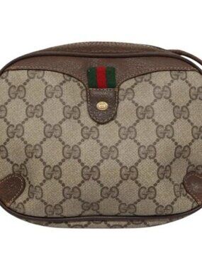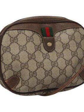 GUCCI GG Supreme Web Sherry Line Shoulder Bag PVC Beige Red Auth 99180