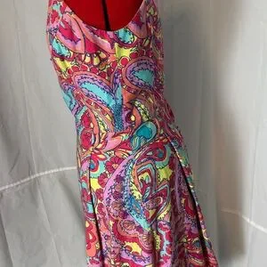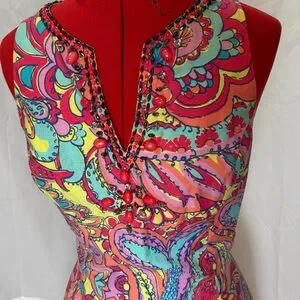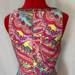 Lilly Pulitzer Vibrant Multicolor Paisley Dress with beaded neckline