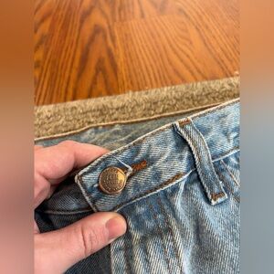 No size tag but waist measures 14.5 inches across, 32 inch inseam