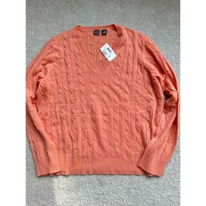 $179 NWT VINTAGE SAKS FITH AVENUE Z 100% CASHMERE CABLE KNIT V NECK SWEATER 2X