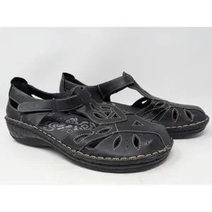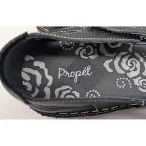 Propet Women's 12 M Black Leather Laser Cut Mary Jane Comfort Shoes Sandals