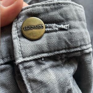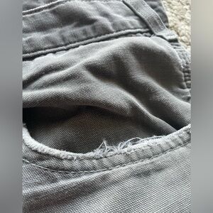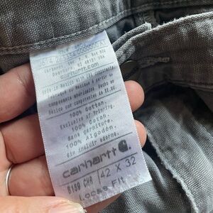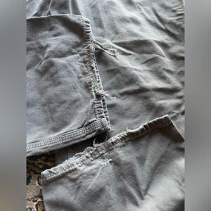 Fair condition gray work pants by Carhartt. Loose fit for comfort.