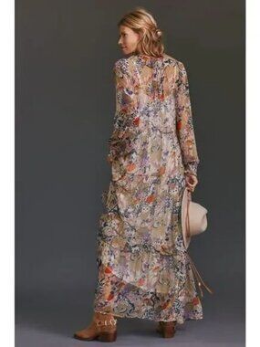 Rare NWT Anthropologie The Marais printed owl chiffon boho maxi dress size s