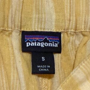Patagonia Yellow Striped Shorts with tie front and hemp blend sz S