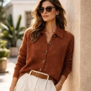 Knit from supersoft and plushy yarn, this cardigan will be at the top of your sweater stack all season. With a button front and retro polo collar, it's a cute topper for skirts and jeans.