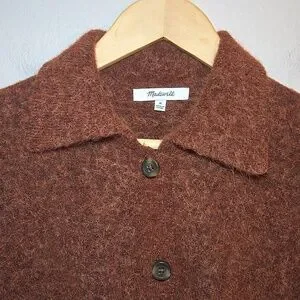 Madewell Carrabelle Polo Cardigan Alpaca Mohair Sweater In Heather Mahogany