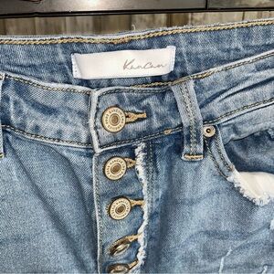 Kancan Estilo Button High Rise Distressed Fray Bottom Jeans
