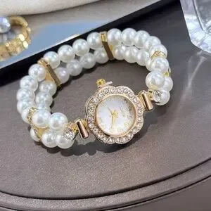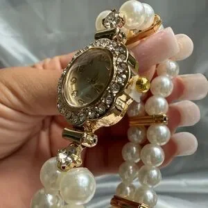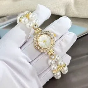Women’s 18k gold color Stainless steel Panther’s watch Pearl and diamond