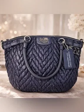Authentic Coach 1941 collection satchel from the 70th Anniversary release—featuring a beautifully quilted nylon body with leather trim and signature heritage detailing.