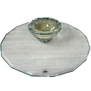 Oleg Cassini Crystal Yellow Diamond Footed Cake Stand Serving Platter 13"